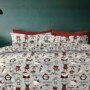 Zestaw Wesołych Świąt może mieć różne rozmiary (półtora, podwójne, euro, rodzinne) i zawiera prześcieradło, poszwę na kołdrę i poszewki na poduszki.