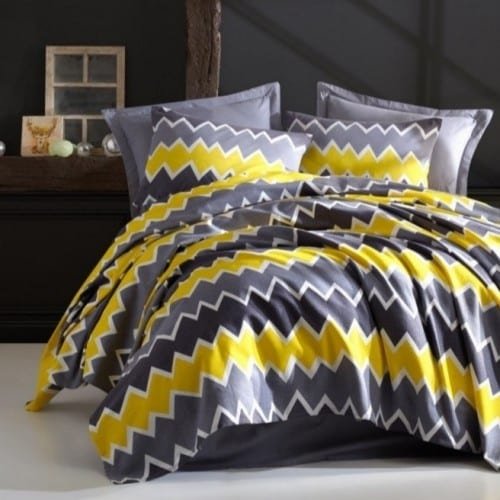 Pościel Beżowa Złota Szara i żółte zygzaki Euro